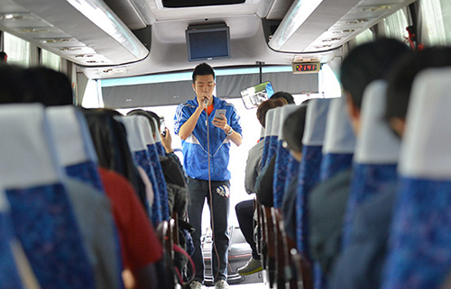 大巴车上阵阵欢声笑语的氛围完全湮没了车窗外阴霾…