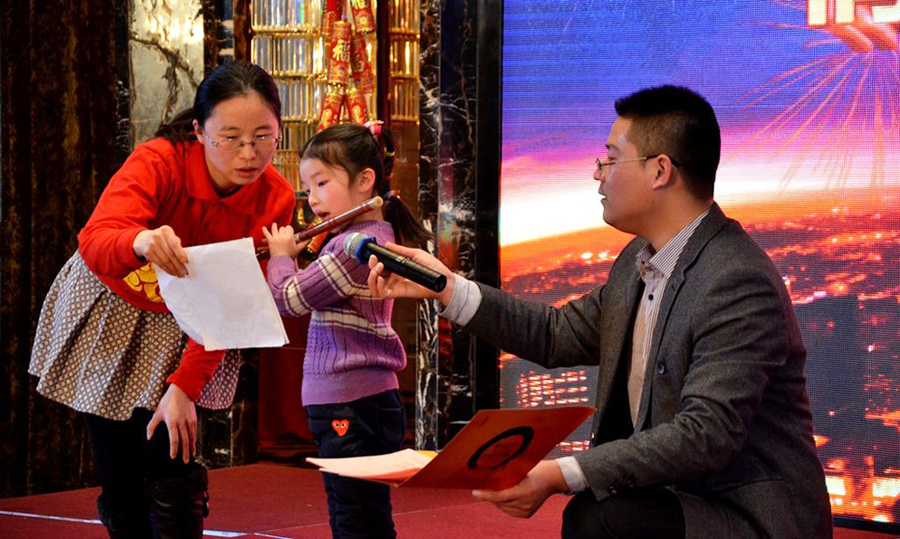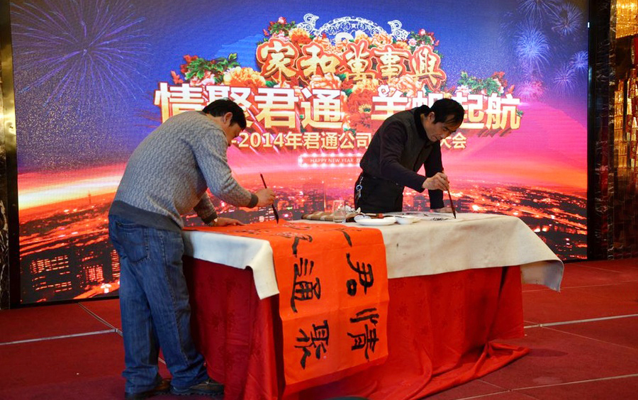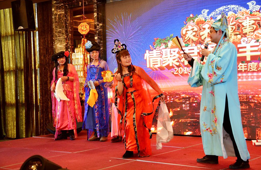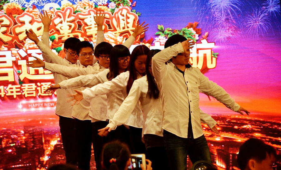 | 2015年2月11日,民间俗称的小年,好日子。 立春后的江南阳光灿烂,温暖如春。 太湖畔的同庆楼百合厅流光溢彩,喜气洋洋。身着节日盛装的青春少女鱼贯而入,留下银玲般的笑声,走过她们身边,仿佛被青春撞了一下腰。 君通春晚在欢快的乐曲声中,在员工的欢呼声中拉开了帷幕。 君通总经理尹可珍女士发表了热情洋溢的新年贺词。2000年10月尹可珍女士创立君通公司,几度风雨几度春秋,君通经过十四年发展成为本地IT行业中实力强的企业。熟识我的博友可能都知道,可珍晚常提到的君子兰,我好的女朋友。很开心参加这个欢乐的盛会,虽没有明星大腕,没有星光灿烂,却是每个君通人的倾情演绎,真情流露,好。 ![]() 君通的春晚现场仿佛是一个欢乐的大家庭,演出以部门家庭为单位,更有许多员工可爱的孩子也表演了许多节目。 市场部的美女妈妈带着双胞胎女儿跳起了欢快的《小苹果》