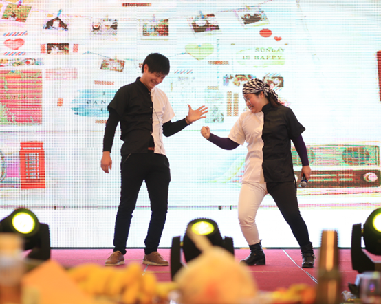 2014年哪首歌火?对,是小苹果,几乎男女老少都能哼出他的调,现场正直播的是市场部的辣妈刘红和两位可爱的小宝宝带来的舞蹈:《小苹果》: |