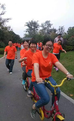 在君通的第34天,公司组织了旅游活动,依旧还是庆祝公司成立15周年,我们来到了无锡阳山,两天一夜的行程,全部安排的满满的。从拔河比赛到两人三足比赛,到骑自行车比赛,到晚会,再到第二天的爬山,划船以及自由活动,这个活动对于我来说,是培养与君通感情的,像谈恋爱的两个人,从陌生到了解到熟悉,再到深深的无法自拔,我想我要爱上君通了。