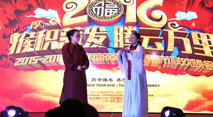 一年一度在春节前举行的公司年会,是公司一年中重要的会议,也是对公司一年来各方面的总结及对员工一年来工作的的表彰,成功的公司年会可以提升企业形象,表达公司对员工的关爱之情,联络员工之间的感情,因而增加企业凝聚力。 2015年君通年会在一月二十八上午召开,这是我经历的第十三次年会。