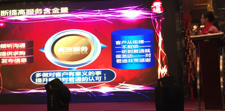 作为成立不久的苏州君通公司,不仅有苏州的客户选择并信赖苏州君通,我们还开发到了上海、张家港、常熟、太仓、昆山等地区的数家客户!这是我们君通品牌公司的力量!相信不久的未来我们君通的影响力会扩散到全国!但是我们的朱总还是很谦虚地寻找差距和不足,这让我们看到了我们苏州君通的发展空间和希望!期待2016年度苏州公司全方面发展的质的飞跃,能在苏州市场形成具有君通特色的竞争力!