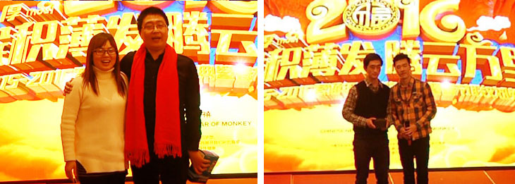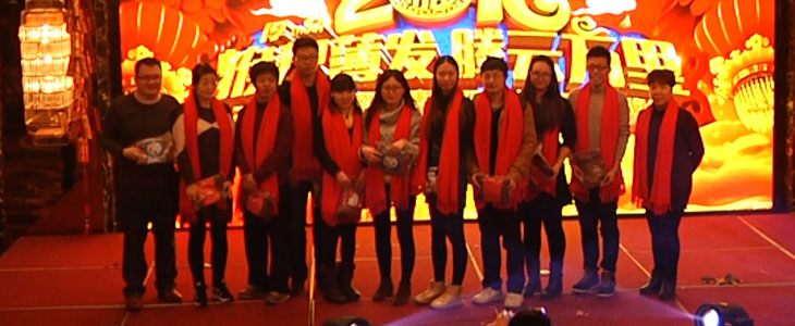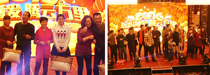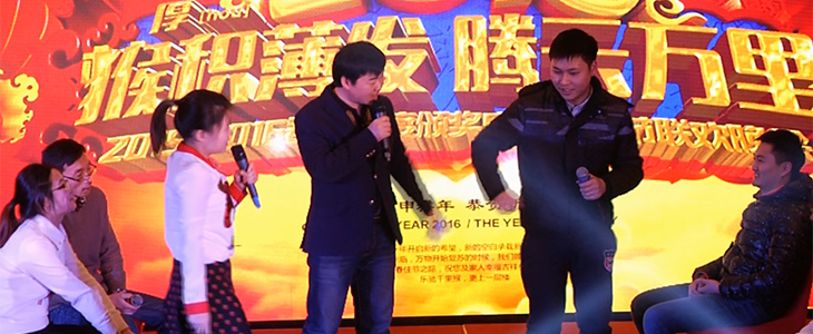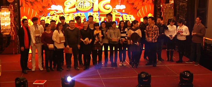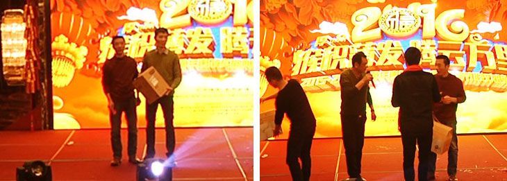 马上纪念奖、三等奖、二等奖、一等奖、特等奖、十五名现金大奖一奖高过一奖都在等候着大家,话说能在年会上中奖可是喜上加喜的事,预示着他们2016年有足足的好运气,也鞭策他们在各自的岗位上发挥他们的光和热、大干一场: