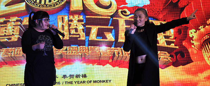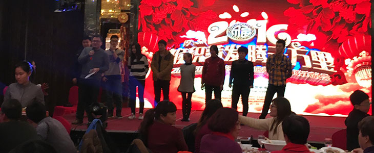 下面首先有请我们君通的大家长尹总来给2016年度君通杯春晚致开幕词,本届君通杯春晚尹总邀请了她的姐姐姐夫、她的老同学老领导等嘉宾莅临本次春晚,尹总作为东道主首先隆重地介绍了他们的到来: