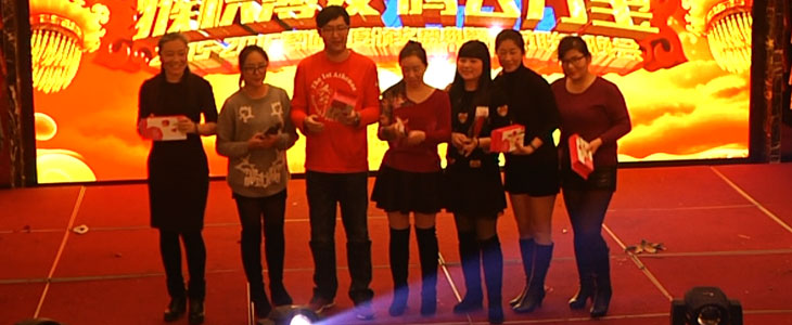 本次春晚比以往增多了两项:一、微助力大获被乔总摘得;二、微砍价得主被我们的移动端设计师艳艳获得,新鲜的获奖方式增加了我们获奖的概率,要是都没抽到也不要伤心,马上我们晚会表演的大奖要颁发了: