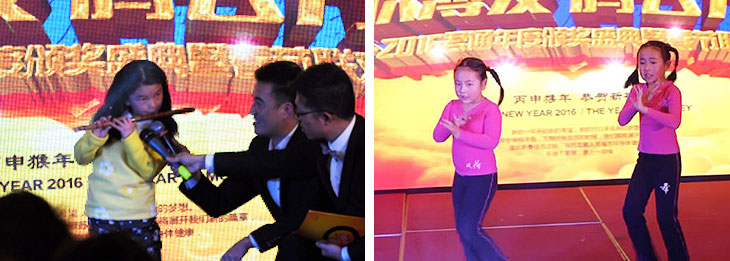 一场视觉盛宴欣赏完接下来登场的是我们市场部王经理的外孙女陆薏莲为大家带来的二胡独奏《喜洋洋》,参加过君通2014年度春晚的都对这个小美女印象深刻,对,她是那个和乔博pk到后赢得胜利的女汉子陆薏莲,也是我们君通春晚上的一个“君通下下一代”哦,在这里我要说:“我们君通人肯定会一代更比一代强”!她给我们带来的是一支欢快俏皮的二胡《喜洋洋》独奏,让大家开心不已、尤其是小朋友都好奇姐姐怎么那么有才华?确实她不仅人长得漂亮、还那么博学能干,现如今了解并去学习我们中国传统乐器的很少很少,而陆薏莲做到了,晚会上也获得了表演奖: