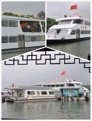 在龙兴岛上体验着玩闹的乐趣,乘坐游轮,沐浴微风,感受湖光山色,水天连成一线的美景。