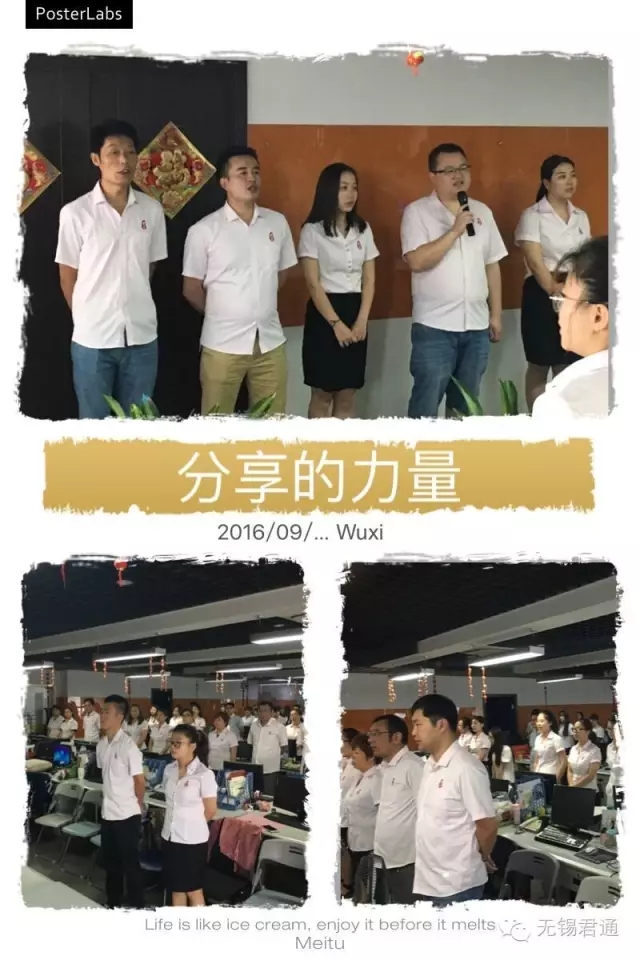 君通的企业文化中有两个核心的理念:“客户:以客户为尊,以诚信为本,帮助客户成长”“关心员工成长:努力提高员工的生存质量,使大家有种幸福感和成感”。这也是大家长尹总常挂在心头的理想。她总像母亲一样为她的“孩子们”操碎了心,常念叨自己有一份责任,要让君通的员工得到成长和幸福,像那个时常响起的口号:快乐工作、幸福生活。岁月仿佛不经意间悄悄的溜走了,恍惚之间,公司成立至今也已经十六个年头。现如今,在这个大家庭中有经验丰富的前辈老兵,正当青壮的中流砥柱,朝气蓬勃的青年才俊。分享客户服务的心得,分享客户反馈的信任,分享员工成长的历程,分享员工幸福的瞬间,这些已然成为一种责任。传承的责任!
