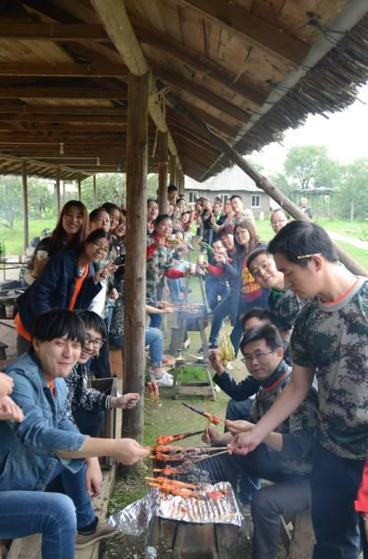 早上我高高兴兴的来到公司,然后大家一起上了大巴车。经过一个半小时左右的汽车的颠簸,我们终于来到了我们这次司庆的地点——踏青农庄。一切准备工作做好后,我们开始了我们环节:做游戏。为了让我们公司的员工更加有团队精神,行政部门也想了很多有趣的游戏,让我们也体会到了团队合作的重要性。印象深的当然还是拔河了,我也参加了,虽然没有获得胜利,但是也很开心,原本因为天气感到冰冷的身体也热了起来。到了中午,那是重要的部分了,没错是吃。作为一名胖子,吃是大的幸福。大家也分成了7个小组开始自己动手烧烤了起来。没过多久,大家的烧烤摊开始烟气腾腾了。我也没闲着,去别的组去“偷”东西吃。烤的好的要数市场部的叶师傅和行政的王博哥烤的烤肉了,真是让人吃了还想吃,根本停不下来!大家伙都吃的非常的开心,都露出了幸福的笑脸。