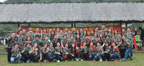 到达训练基地后,君通的小伙伴们火速集结,由“职场达人”瞬间变身为英姿飒爽的“军人”,开始了突破自我的挑战。尽管天气阴沉,冷风阵阵,但丝毫阻挡不了每一位参训人员的热情。正式开训前,一系列的欢快活动,让大家迅速建立起团队之间彼此信任的基础。紧接着,在主持人的号召下,全体人员共同完成了“万里长城”、 “桃花几朵开”、“拔河”等挑战项目。 “万里长城”项目考验的是团队之间的信任,而“桃花几朵开”项目则是体现了团队的协作精神。然后,小伙伴们分成两个队伍,开始了紧张而刺激的拔河比赛,每个人都玩的不亦乐乎!