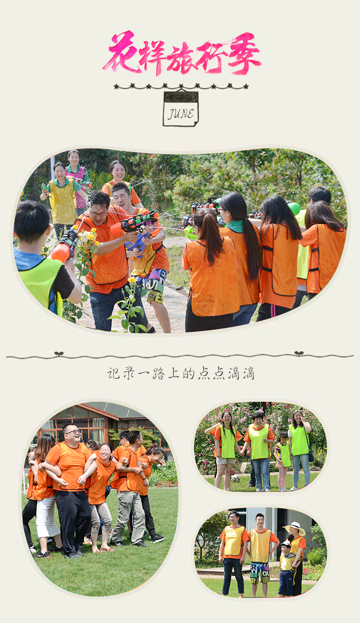 吃好午饭大家各自歇息一下,然后进入了我们下午的活动,个游戏是水枪大战,大家各自领好自己的装备,开始去装水,然后两队先躲起来,剩下两队是进攻的,激烈的战斗开始了,虽然衣服都湿透了但是大家还是不放弃还是攻打对方,看着我们的胖阿杜和胖蒲斌很搞笑,大家都围着他两攻击,全程大家玩的都很嗨,因为天气热的原因,正好这么个水枪大战大家都积极参加根本不在乎自己的衣服湿掉什么的,连我们的小朋友们都不甘示弱,跟着部队跑见人攻击,大家都玩的忘乎自我了,当然也有我们的摄影师给我们留下美好的瞬间,这个环节结束后大家开始了另一个游戏大脚板,两队两队pk把每组队员的两只脚各自绑在两个大板上,然后一二一二的一起往前走,开始的时候大家配合的都不是很好导致前行不了,后来领队的人告知大家按照一个节拍来,开始先左后右,这样的话不会乱掉,全部按照领队的节拍来可以,大家又再试了一次,都喊着一个节拍一起往前走,这次真的做到了,没有中途停下来而且一口气走到终点,大家都好厉害,做到了真正的齐心协力,趁着大家开心的劲头开始了另一个游戏抢板凳,这个很好玩,因为输了的人要去抽签,看自己抽到的会是什么题目,然后按照自己抽到的结果去做惩罚,虽然说很吃力,但是大家还是很积极的参加即使知道自己会被罚,看吧,个被罚的人是技术部的蒋瑜娟,所以剩下的人会更加小心几乎都不敢移步了盯着板凳不敢走生怕没坐到被罚,虽然胜出的只有一个,但是大家还是很开心,因为重在参与,只为过程中的开心,享受集体活动的快乐,的游戏全部结束了,大家开始收拾东西准备去采摘!