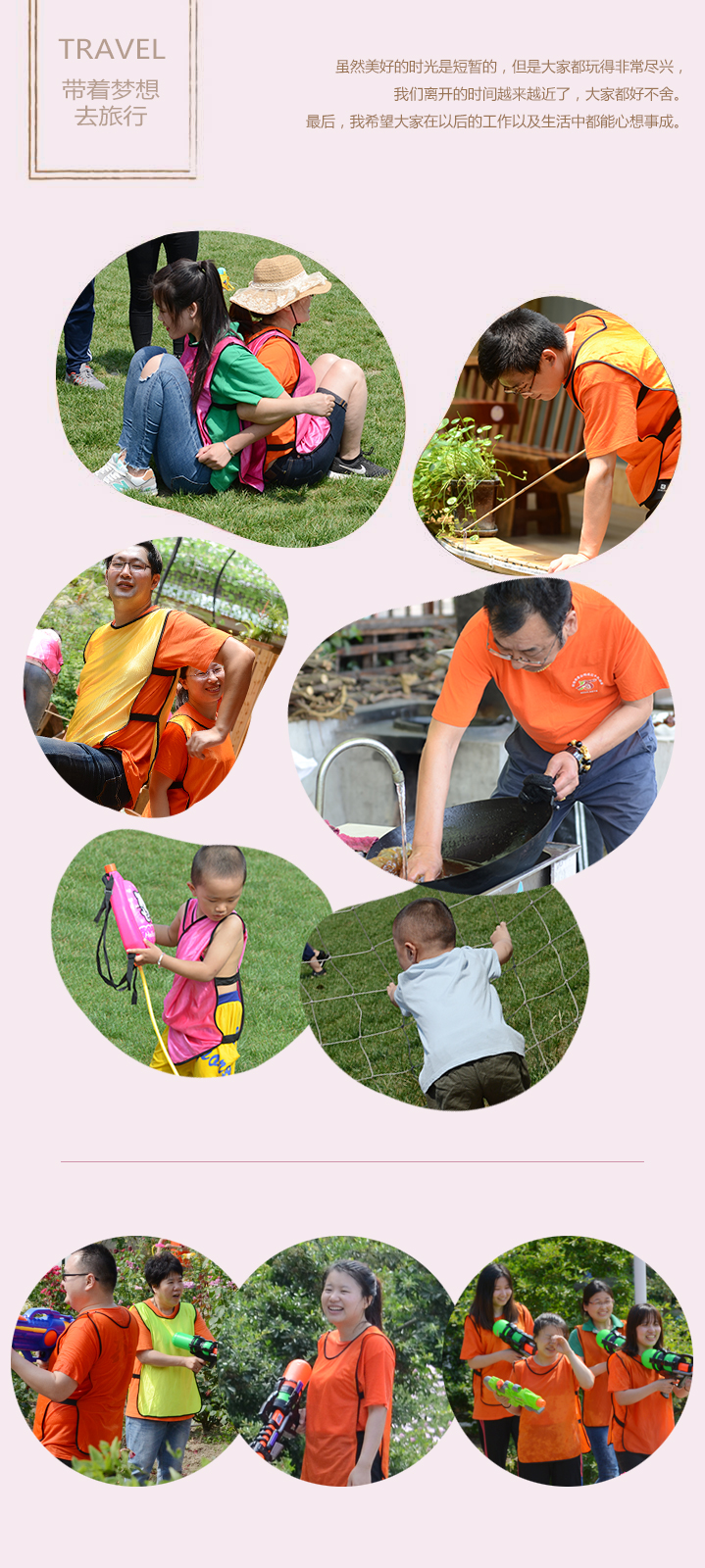 下午时期大战一触即发,各自的队伍选择自己喷水武器,不管是小朋友还是大朋友,都参加进来了,大家都玩得非常尽兴,但是美好的时光都是非常的短暂的,我们离开的时间越来越近了,大家都好不舍。我希望大家在以后的工作以及生活中都能心想事成。