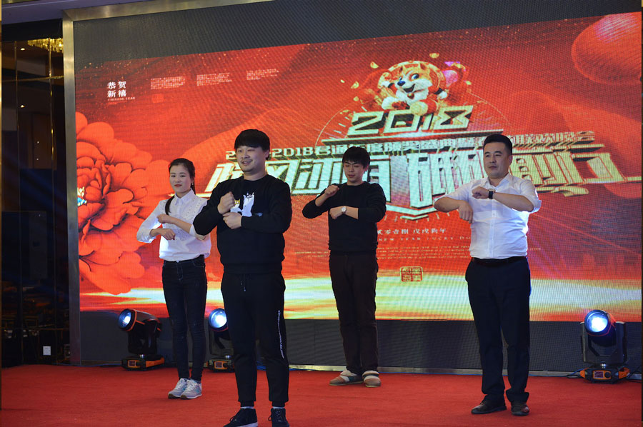 由康总带领的客服和行政部带来的重量级阵容舞蹈——《嗨翻2018》一度点燃了的气氛,赢得了在场观众雷鸣般的掌声。姑娘们在动感十足的韵律中登上舞台,整齐划一、充满活力的舞姿,康总富有感染力的表现,成为晚会的亮点之一。
