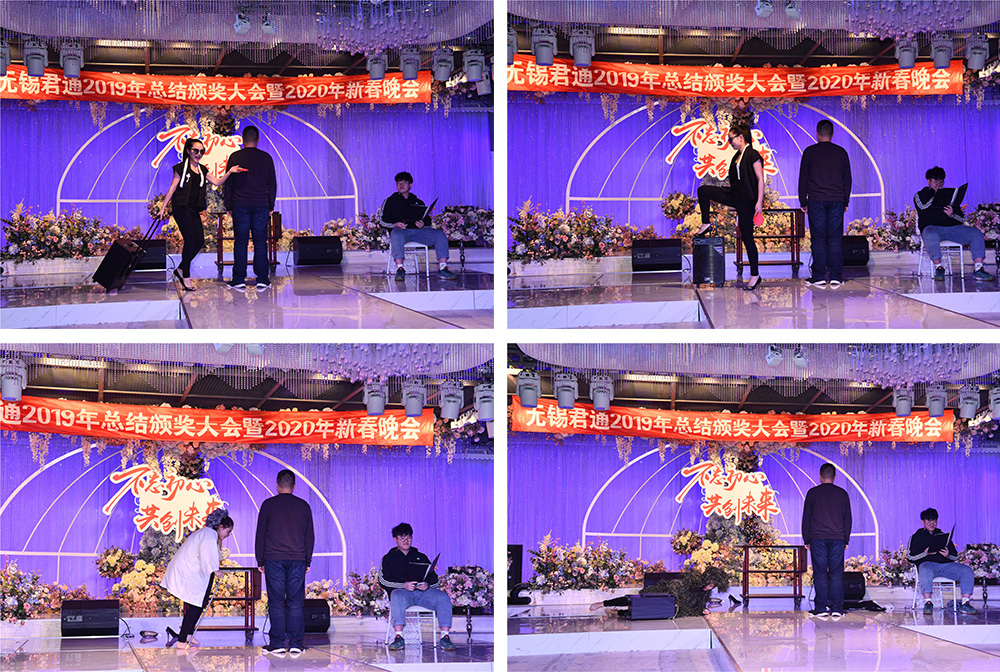君通每年的联欢会都少不了语言类节目,语言类节目又必定少不了相声,但是一般的相声怎么值得上君通的舞台,必须是不一样的相声才行。电销二部的陈日强和仲毅两位帅哥为我们带来一段《不一样的相声》。