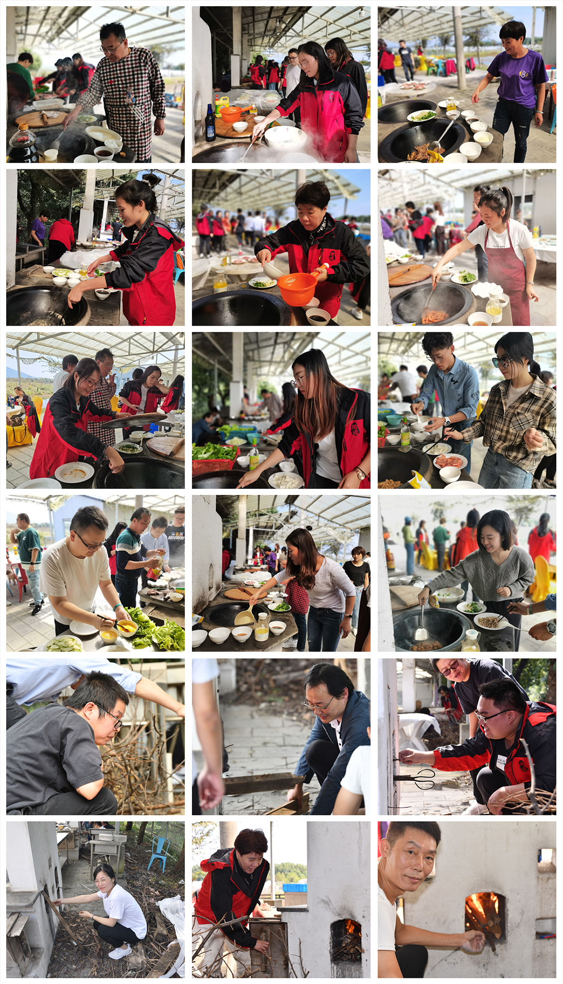 大家可能都已经猜到了哦,对的,那就是集体自己动手丰衣足食,天的午饭就要靠君通的各位大厨们各显身手了啊!按照之前事先的分组开始忙碌起来了,真的不愧是老当益壮,看吧,市场一线的王国新经理围裙穿好已经开始了他的拿手菜红烧鱼了,看上去技术真的是棒棒哒,还有这边,市场一部的赵冬琴经理也穿上了围裙开始一展身手了,那娴熟的动作和火候的掌握平时在家里应该没有少做饭,每个组都有自己的大厨,大家都忙的不亦乐乎,烧火的烧火,打杂的打杂,注重流程分工到位,就像平时的工作中一样,销售在前线战场,内业在后面做好坚实的后盾,输送战药和粮草,各司其职打好漂亮的一战,此时的现场真的是忙的热火朝天,我们的烧火小能手吴青真的是棒棒哒,看来不是两天练就的,我们的老大尹总也按奈不住了,穿起围裙,开始了自己的拿手菜,爆炒虾,红烧鸡肉,色泽味俱全,看上去就让人忍不住流口水,君通的伙伴们真的是上得了厅堂下得了厨房,丰盛的美食大餐,可口的美酒,举杯共祝君通二十岁生日快乐!