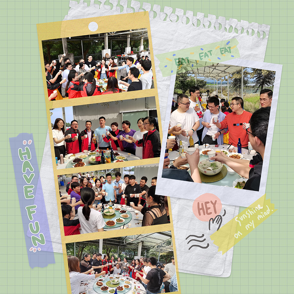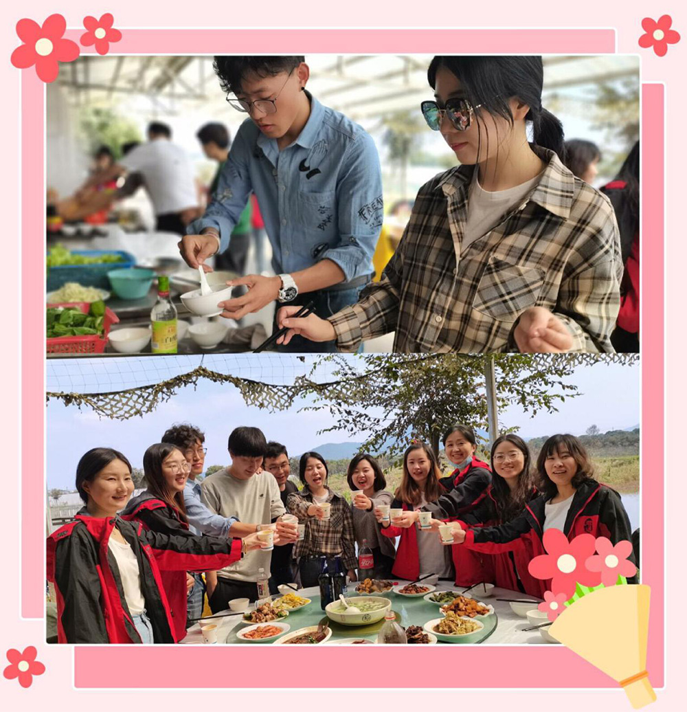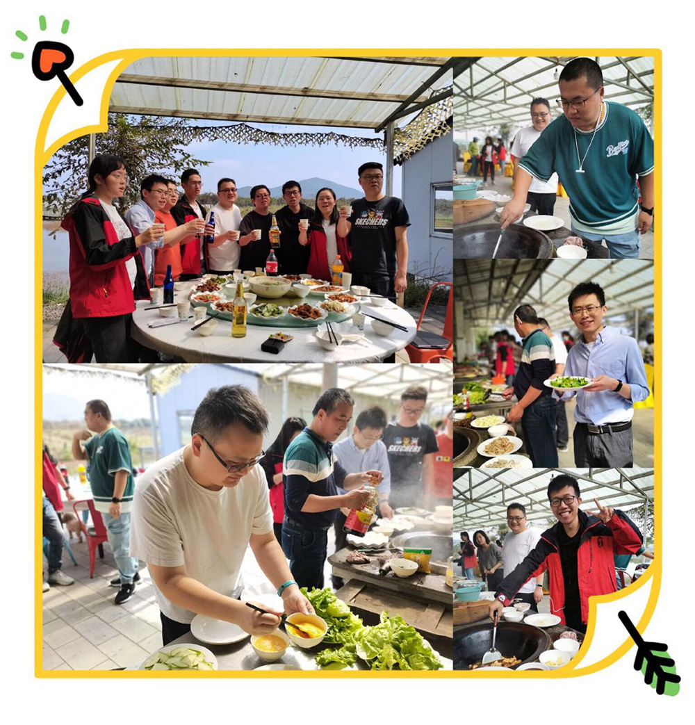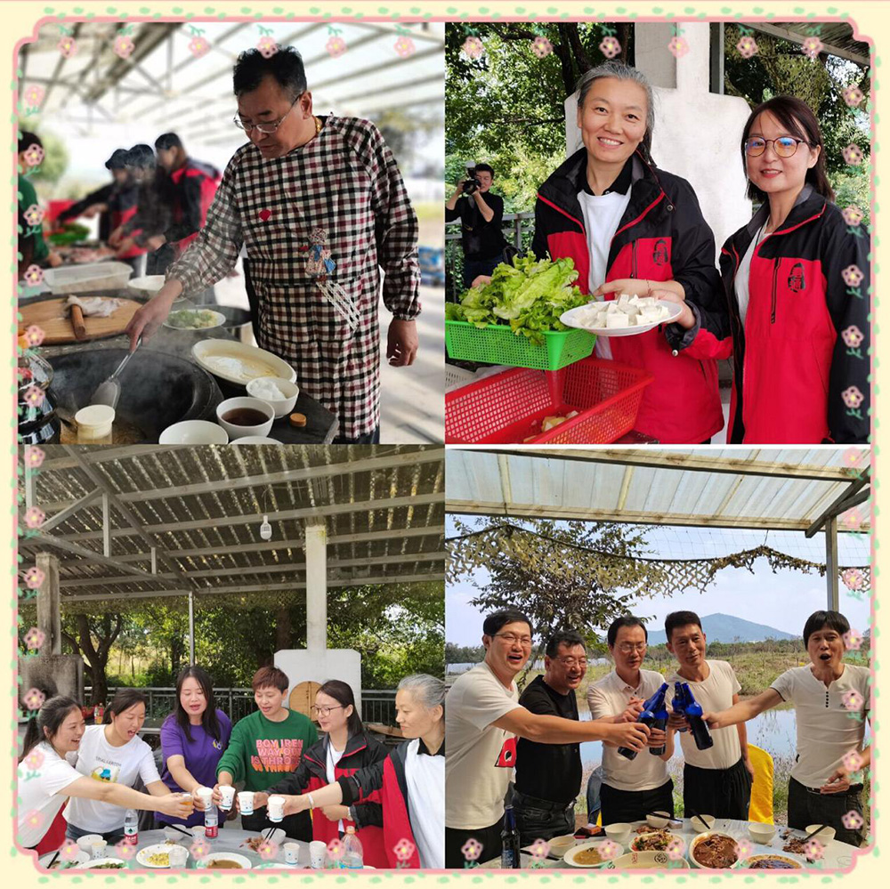 聆听完2小时的音乐盛宴,大家到达了康总为大家精心安排的宜兴金沙湾农庄,伙伴们按照分好的组一起烧土灶饭,一到土灶台,多才多艺的君通厨神、厨娘们、伙夫们争分夺秒地开始了她们的厨艺展示,不得不夸夸我们的Topsales赵经理不仅在工作中热心帮助新人、也主动帮助我们年轻的电销团队们烧了一桌美味佳肴: