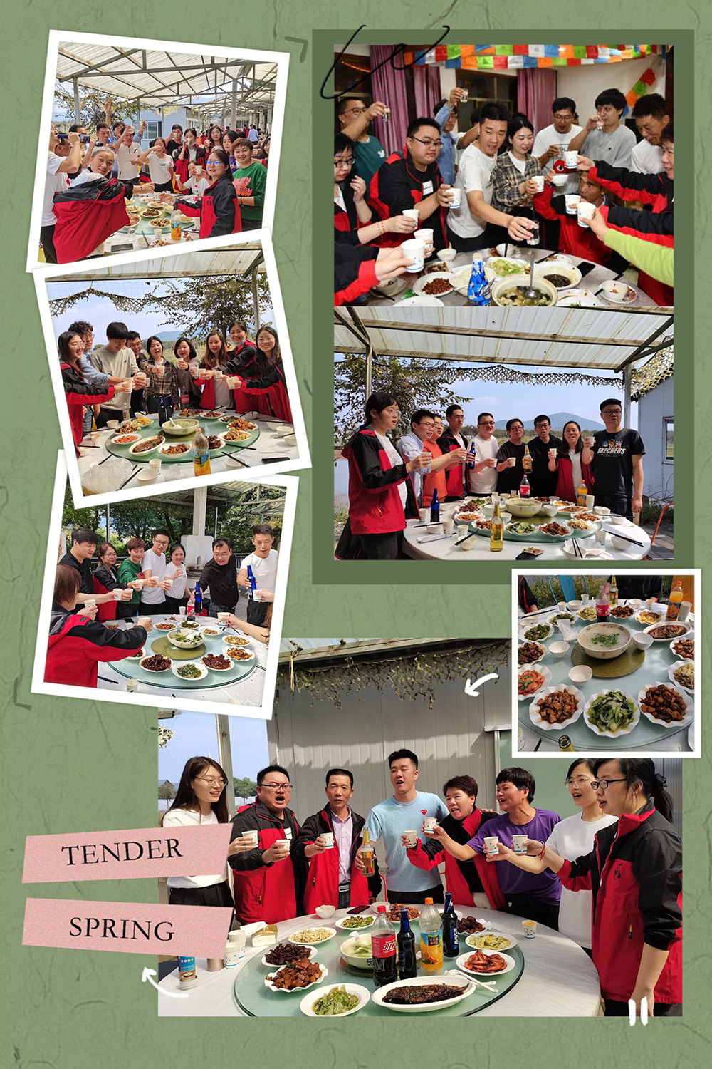 在大家一番热火朝天的忙碌中,飘香四溢的一桌桌美食,伙伴们倍感振奋、开心之情溢于言表!民以食为天,幸福的时刻就是大吃一顿了: