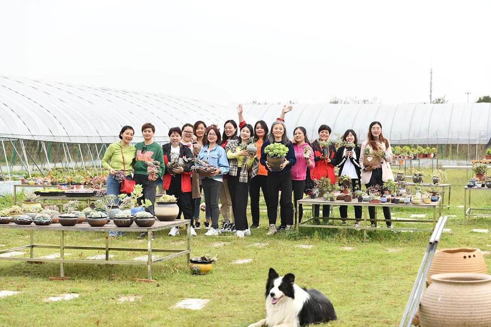 第二天,我们大家长尹总带领我们公司的半边天——君通娘子军团们打卡网红多肉植物园,大家被一颗颗精灵可爱的小多肉深深吸引了,在花卉爱好者尹总的带领下大家爱不释手地选中了心爱的多肉盆景,留作纪念:
