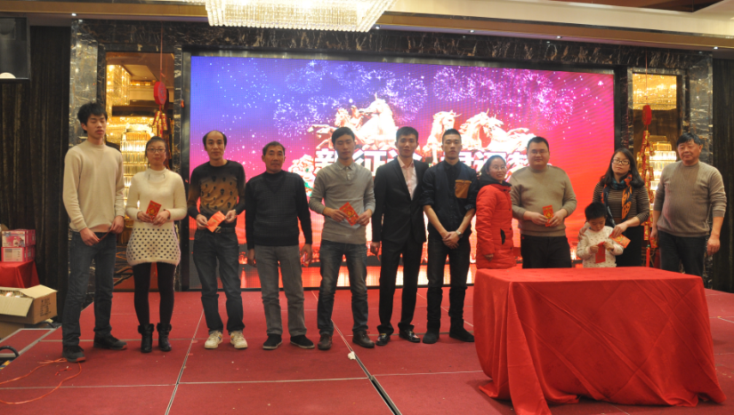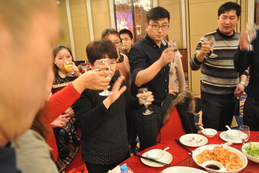 晚宴开始了,想吃的,在桌子上,想喝的,红的,白的,黄的,饮料,应有尽有;交杯换盏、觥筹交错,其乐融融;每人一个红包不说,还有几轮的抽奖,得奖的高兴,没有得奖的也跟着高兴,对,所有人都高兴着。